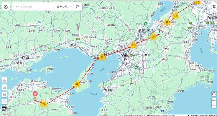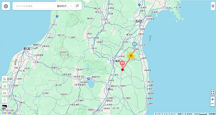 コテツは9時現在で福島まで来ているようです。けっこう進んでいます。