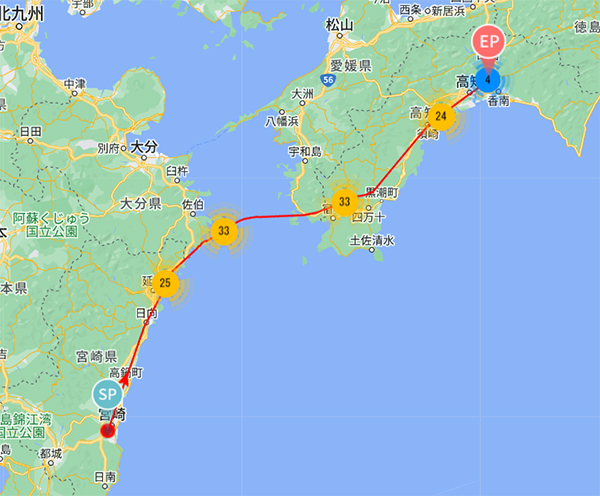 これはStart PointとEnd Pointの略です。皆さんに表示している移動ルートは複数日のデータをつなげていますので、その一番古いデータがSP、一番新しいデータがEPとなります。