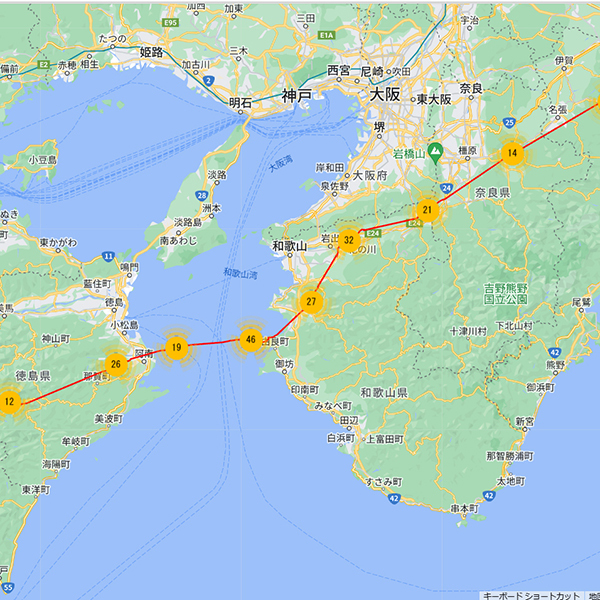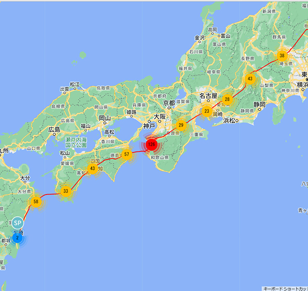 1地点だけクローズアップすると全体が分からないので、皆さんには移動状況が分かるように広範囲の図をお見せしています。そのため、たくさんの位置情報が集約された形で皆さんにはお見せするということになっています。