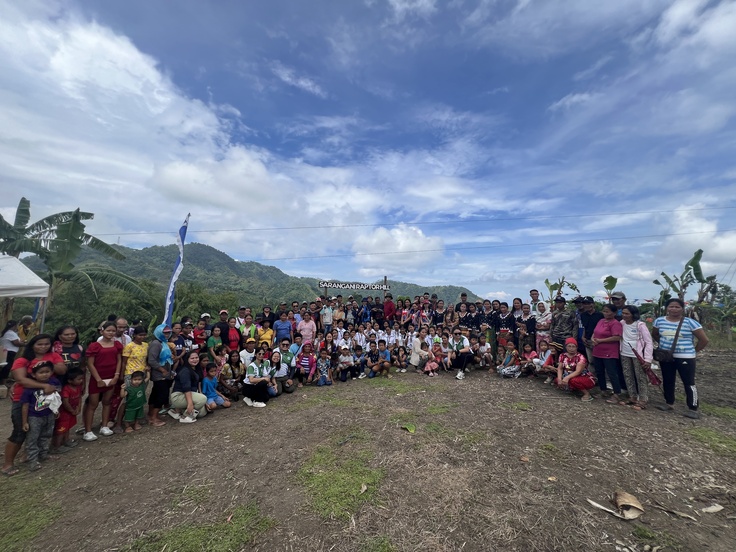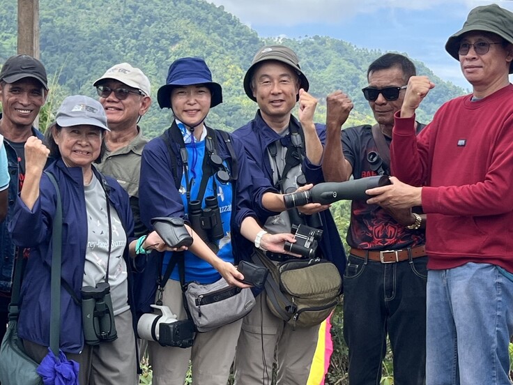 場所はフィリピン最南端に近い丘の上です。地主さんのご厚意で猛禽類観察のシンボル的な場所として利用させていただき、ラプターヒルと名付けられています。展望の良いところで、式典中も多くのアカハラダカがタカ柱を作っては渡っていく光景が見られとても感動的でした。