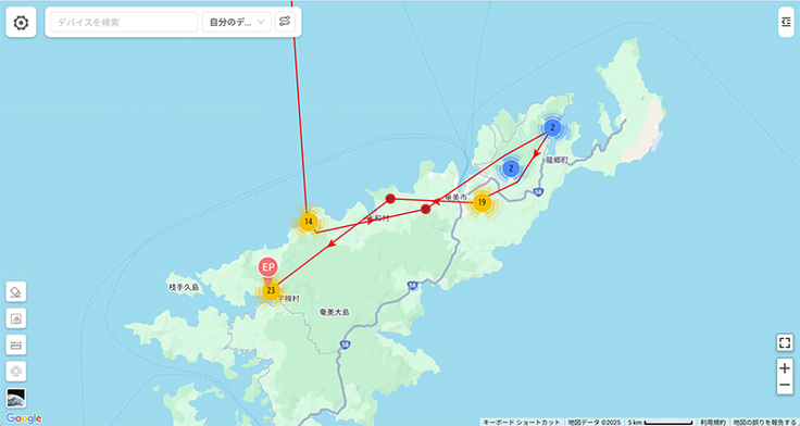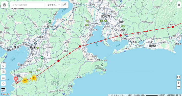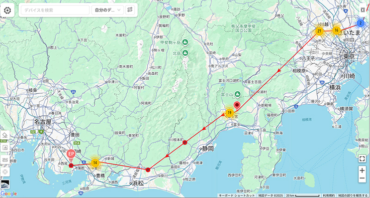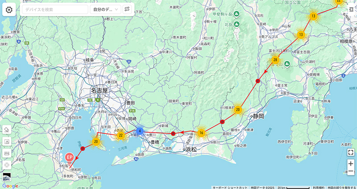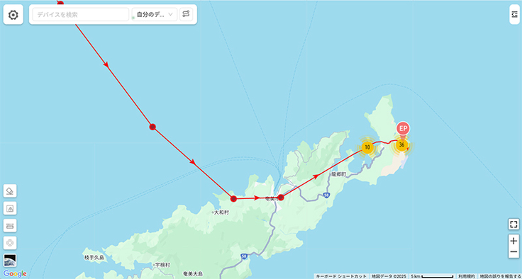 ダイゴ、生勝①、部連①は天候不良のためか三重県あたりで止まっています。