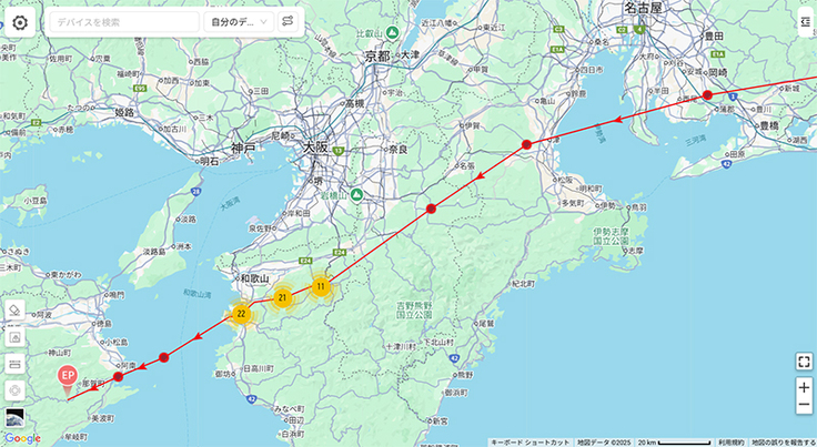 生勝②は進路を調整するかのように伊良湖岬からのルートに入りました。宇宿③もそうですね。こういうルートは何度かありましたが、それであれば伊良湖岬を通ればいいのにといつも思います。伊良湖岬に入る手前の風向や気流などが関係しているのかもしれませんが、興味深い動きではあります。