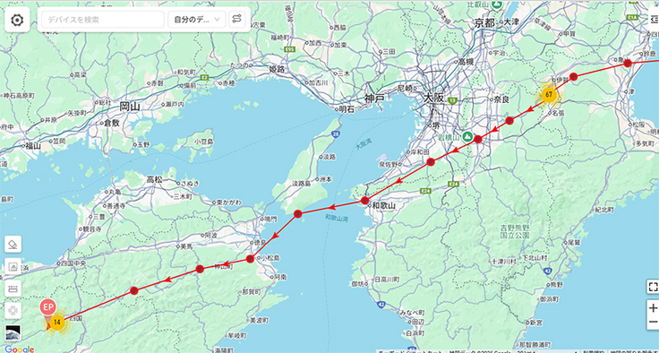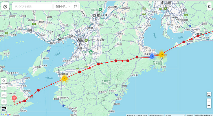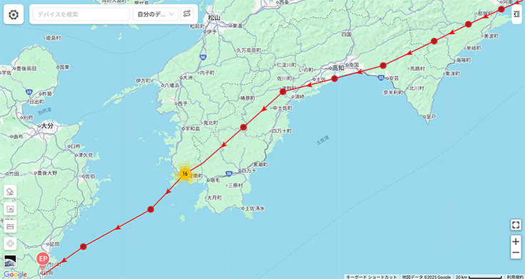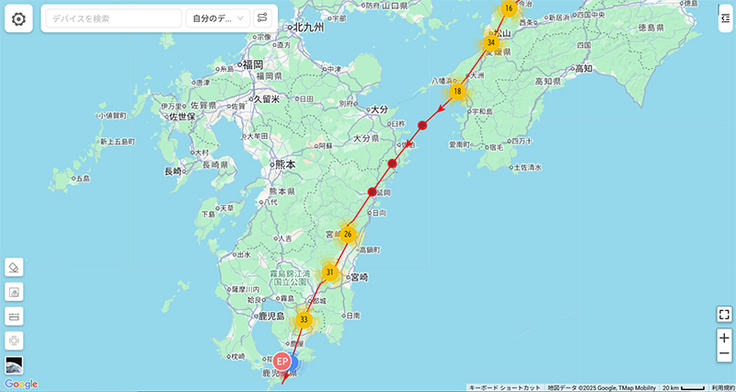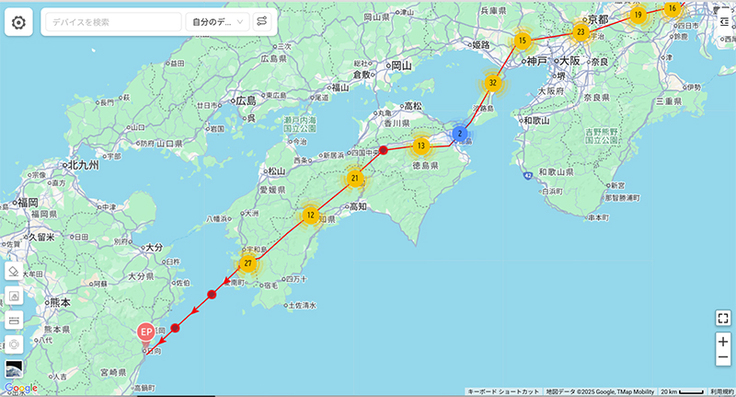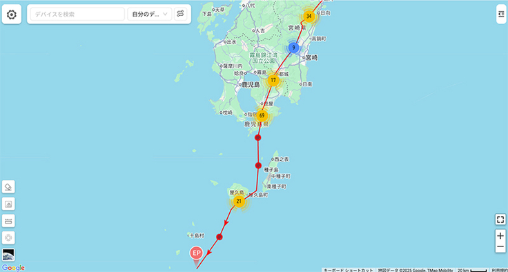 ダイゴは数日ぶりのデータでしたが四国を抜けようとしています。千葉北①は既に九州に入りました。このルートだと奄美組と同じで南西諸島のほうに抜けるのかなと思いますが、どこに行くのか楽しみですね。