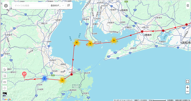 三鳥屋が迷走しながら、結局伊良湖岬からのルートに入りました。伊良湖岬のルートを選ぶつもりが間違えたので戻ろうとしているという解釈もありかもしれないですね。