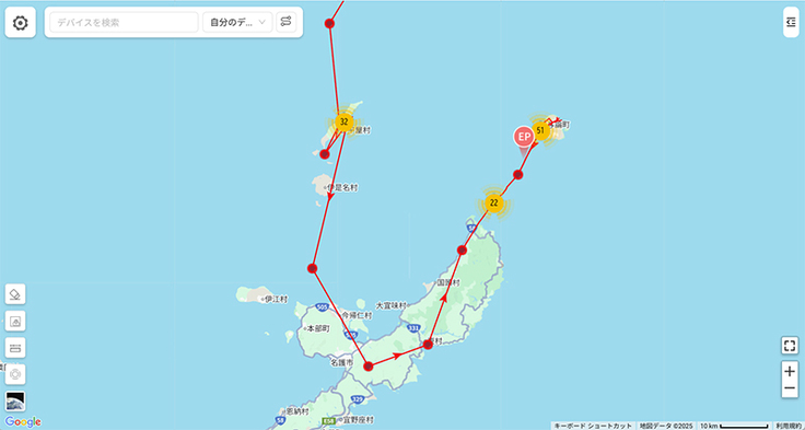 龍郷小からデータが来ました!伊平屋から沖縄島、与論島に入ってまた海に出ています。明らかに動揺している感じがします。誤って奄美大島をスルーしてしまったのでは??目的地が奄美大島なら無事戻れるといいのですが。こっちじゃないと教えてあげたいですね。。