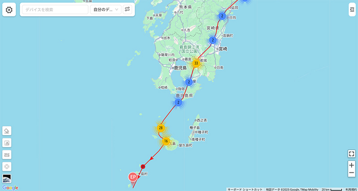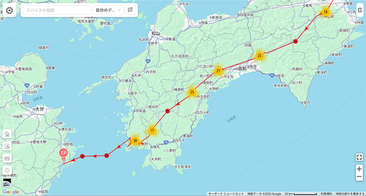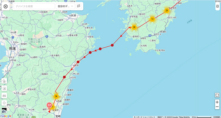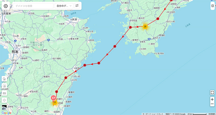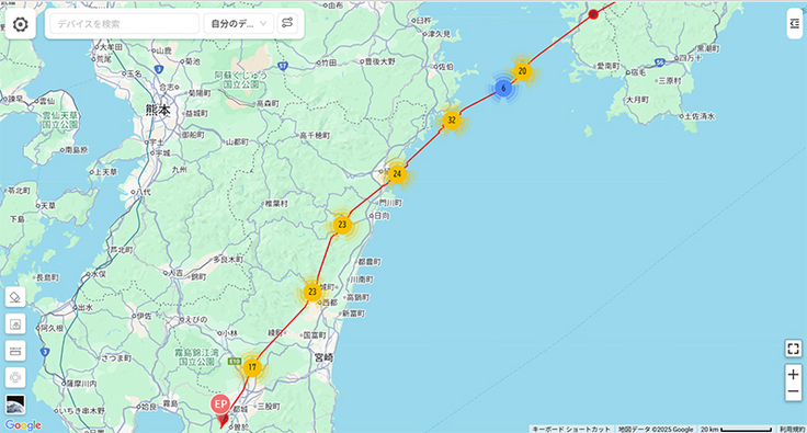 明日のデータ更新では、九州を離れた個体がたくさん見れそうです!楽しみにしていて下さい。
