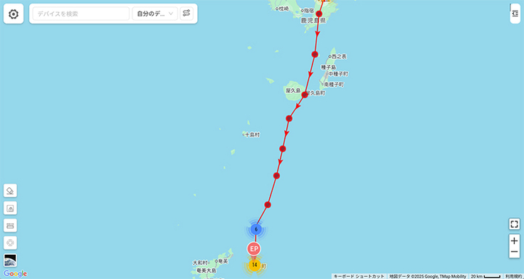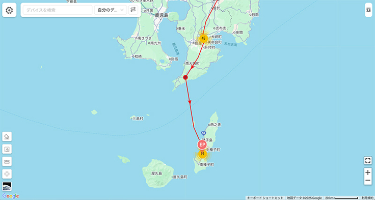 ツムグが屋久島沿いを移動中、部連①も種子島まで移動しています。