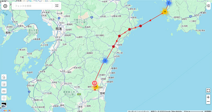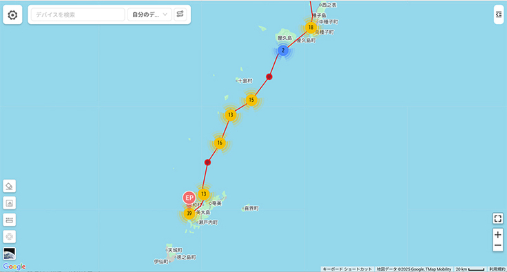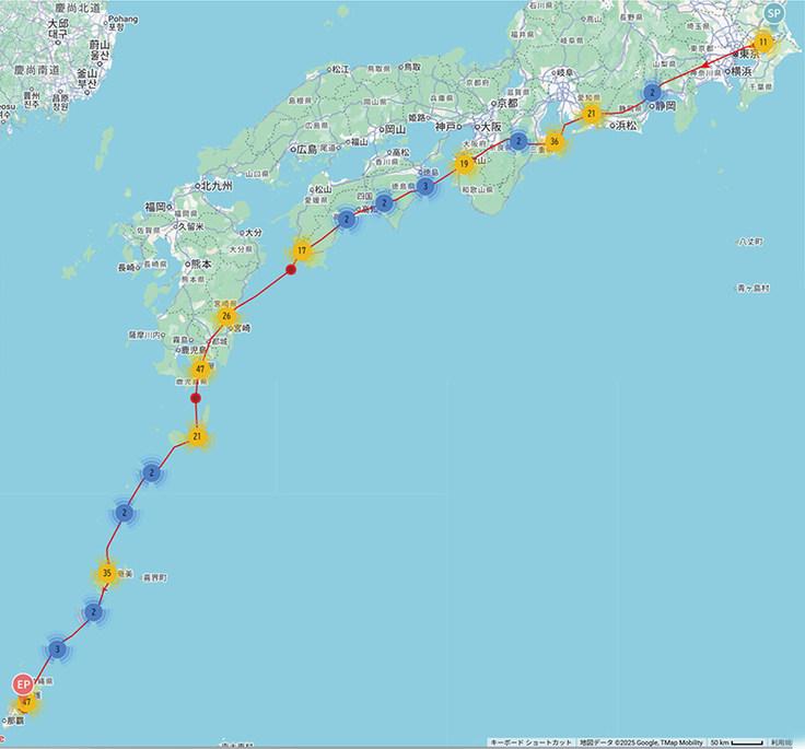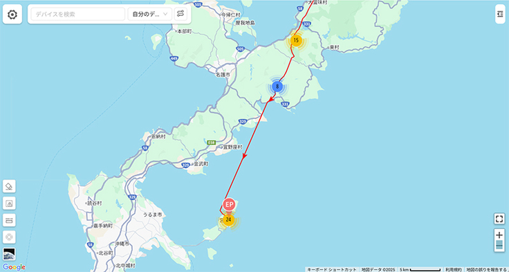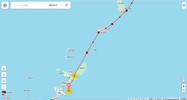ムスビも到着したようです。沖縄県南部で止まりました。繁殖地から14日間かけての旅路でした。これで千葉組4羽の内2羽が沖縄島南部で確定ですね。1羽は徳之島、そしてもう1羽のダイゴも沖縄南部あたりまで来て、そのあと発信が来ていません。近くに降り立ったのかもしれません。