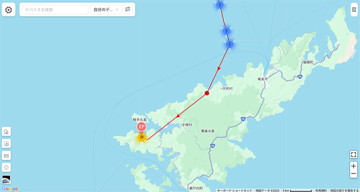 ツムグが奄美大島到着です!越冬地にピンポイントに帰っています。10月13日には到着していたようです。中継地を出て27日目でやっと戻ってきました!お疲れ様です!