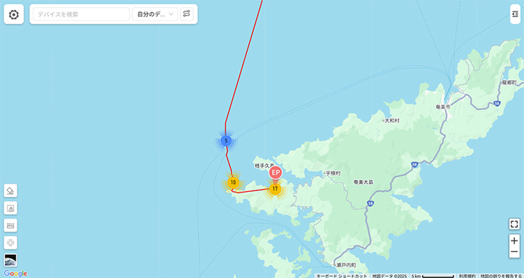 川上②はとっくに奄美大島かと思えば、中之島で一晩過ごしたようで、まだ渡り途中です。