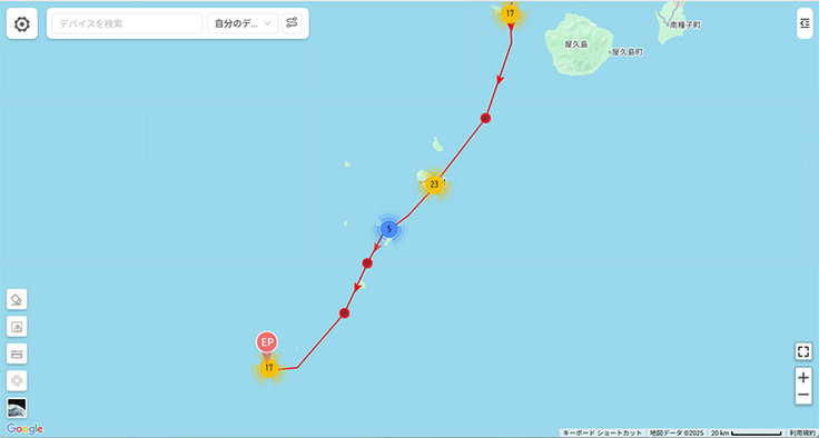 川上③ 10月8日に九州を離れて海に出たところが最後のデータ。すでに奄美にいると予想。