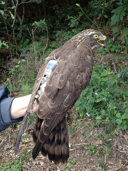 ちなみに昨年度は15個購入しましたが4個を使い切れず、千葉県神崎町で繁殖期に装着を行いました。その結果、4羽のうちの1羽がフィリピンに行くというデータが取れました。綿密な調査計画を立てながら実施し情報を積み上げていく一方で、こうした別の角度からのデータを補填することで、サシバの渡りルート全容解明は、より良い展開を見せるのではないかと期待しています。