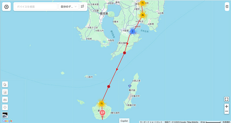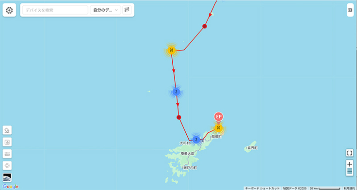 久々に三鳥屋と川上②からデータが来ました。三鳥屋はもう奄美にいるかと思ったら、まさかの屋久島です。九州は25日に離れたようです。9時の時点で屋久島から南の海に出ているので奄美に向かってきていると思いますが、途中で寄り道しないか心配です。
