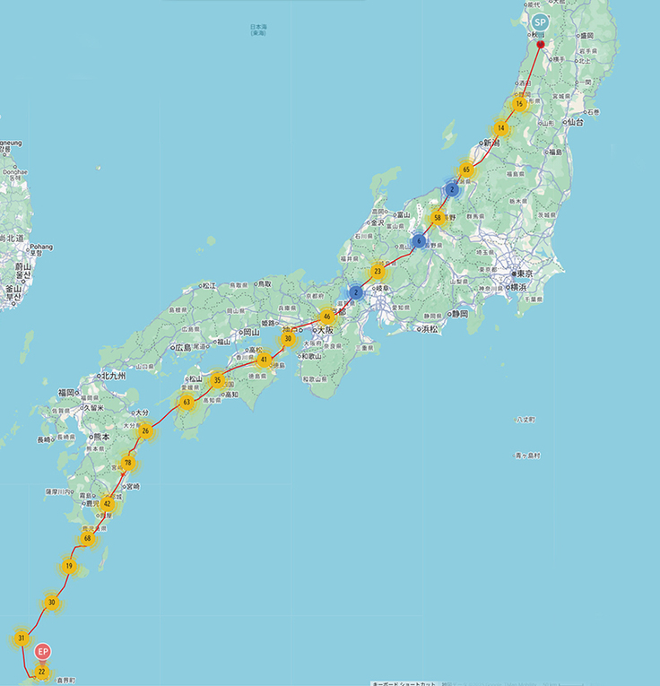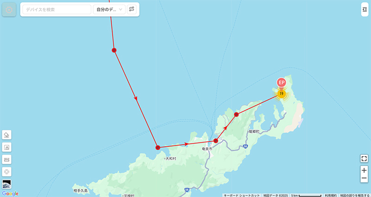 川上②からデータが来ました。やっと奄美大島に到着です。18日に手前の宝島に到着し、1週間滞在して25日にやっと離島。その日のうちに越冬地にピンポイントで戻りました。昨年は10月12日に到着ですから、かなり遅いですね。とにかく無事戻ってきて良かったです。