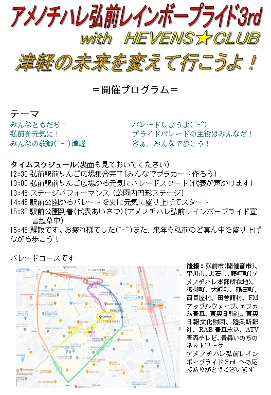 現在、アメノチハレ弘前レインボープライド3rd開催に向けて動いてます。