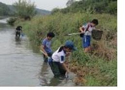 小中高校生で地域の川を守り育てる活動の継続。週に1度は川に入り魚や水生生物をとってモニタリング。外来魚は、命を無駄にしないように調理したり肥料にしたりしている。
