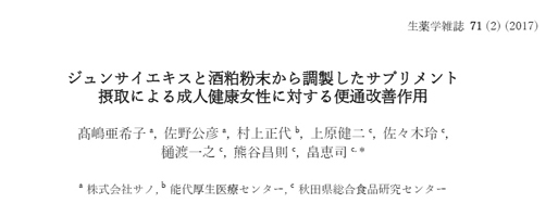 じゅんさいと酒粕の便通改善作用が生薬学雑誌に受理されました