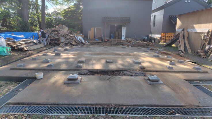 基礎をどうするか考えていたら、重機のボランティアさんが来てくださることに。本当に最後の最後までボランティアさんにはお世話になりました。