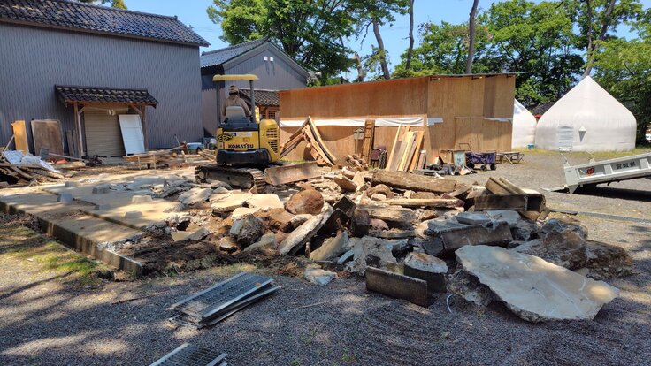 能登町からOPEN JAPANさんの重機が来てくれました。あっという間に基礎を壊していきます。