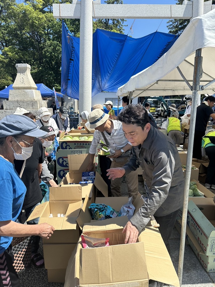 7月からは今までの単純な支援物資配布は終了し、「重蔵復興市」という名称で新たな試みをはじめます。小さな地域の神社ではありますが、これからも被災した地域住民、コミュニティの一員として何か少しでも助けになることを継続していきます。野口健さんのピークエイドの他、カールスモーキー石井さんも参加することになりました。皆で楽しい復興市を作りたいと思います!