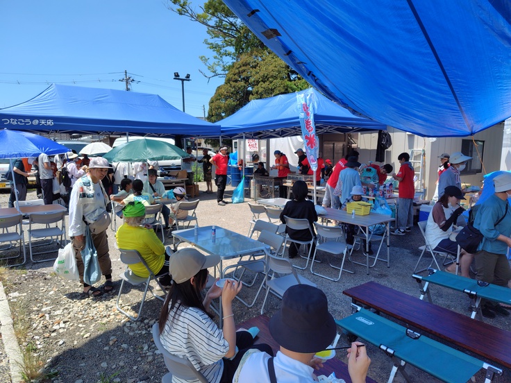 支援物資の会場の隣では「コミサポひろしま」さん、「フェニックス救援隊」の皆様による秋刀魚とコーンなどのバーベキューとかき氷の炊き出しもあり、こちらも大賑わいでした。