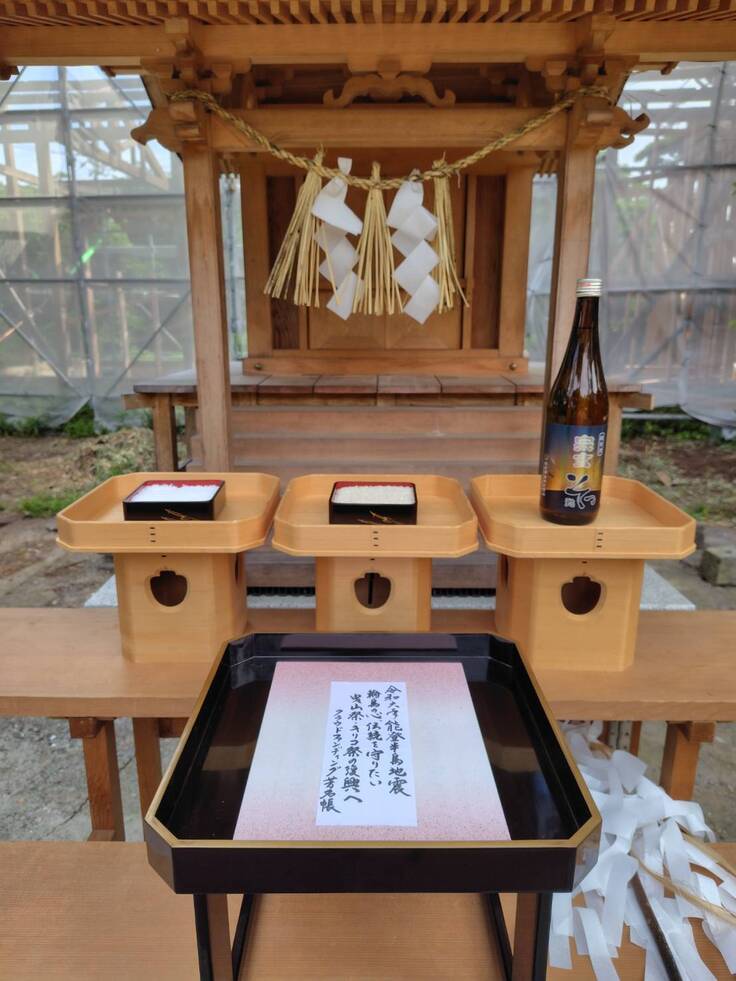 寄付者の御芳名を神前にて御祓いし仮本殿に奉納、ホームページにも掲載いたしました。