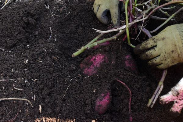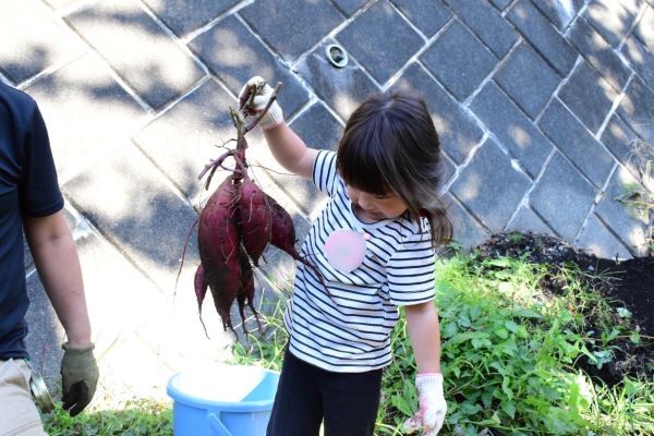 ですが、綺麗になった畑からはサツマイモがいくつも大きな頭を覗かせていて、大量収穫の期待が高まりました。