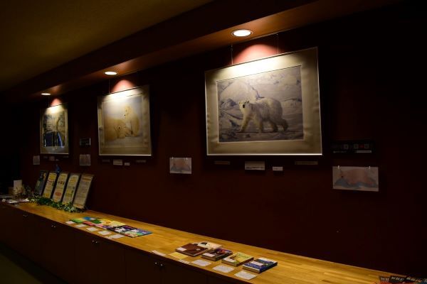 中でも1番の目玉は、3階のライトアップ部分の大きなホッキョクグマの絵画!