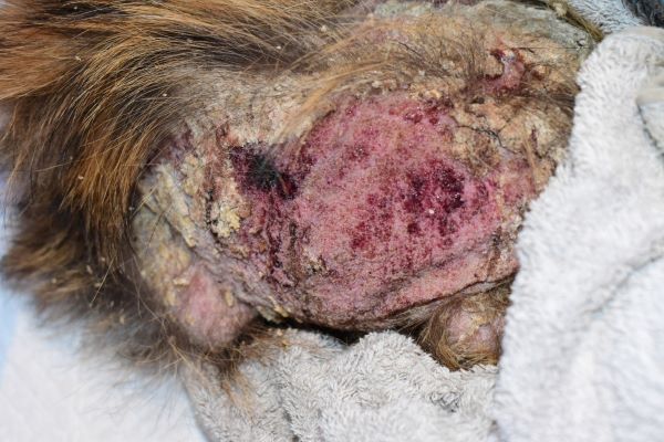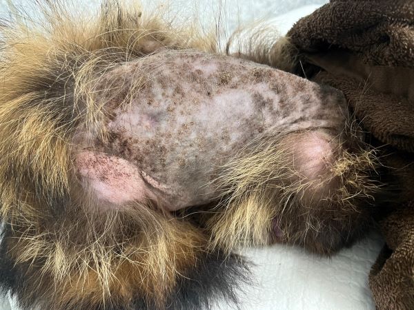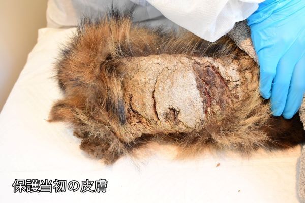 その甲斐あってか徐々に呼吸も安定して食事量も増加し、肥厚した皮膚も少しずつ剥がれ落ちていきましたが、最初は血が滲んだ痛々しい姿でした。