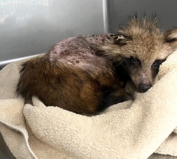 疥癬で弱っているところを1月11日(木)に保護されたタヌキが、先日治療の甲斐なく残念ながら亡くなりました。