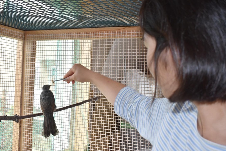 4日目の午前中には初めて餌作りのお手伝いをしました。野生動物の飼育方法が書かれているリソースが限られているようですが、栄養バランスがしっかり考えられていて尚且つ美味しそうな餌を作り動物達に配っていくのはとても楽しかったです。あまり食欲がない子やまだ自分で餌を食べないような子には人間が給餌の補助をしてあげる必要があります。喉に詰まらないようにしっかり見てあげながら口の中に餌を流し込んでいくのは少し怖かったのですが、そのまま口を開けて準備している鳥達を見ると元気でしっかり食べてくれていて、安心しました。
