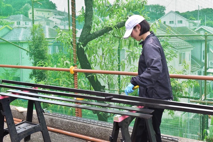 3日目にはケージのパーツである材木の防腐剤塗りをしました。手作りされたそれぞれの飼育スペースにはさまざまな鳥達が状態や性格によって分けられています。適切な広さで生活することは更なる怪我を防ぐために重要なのでそのお手伝いをさせていただけてよかったです。