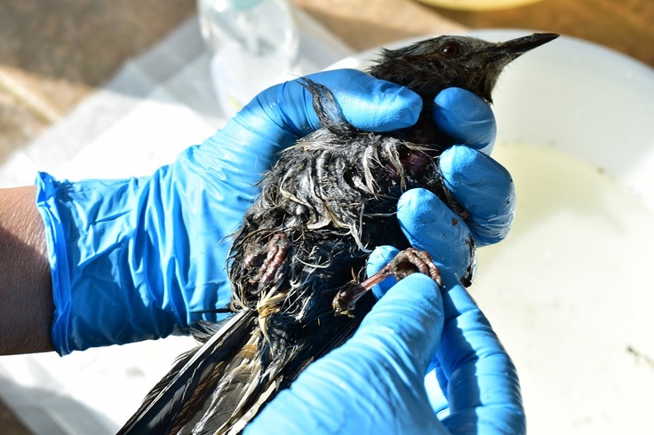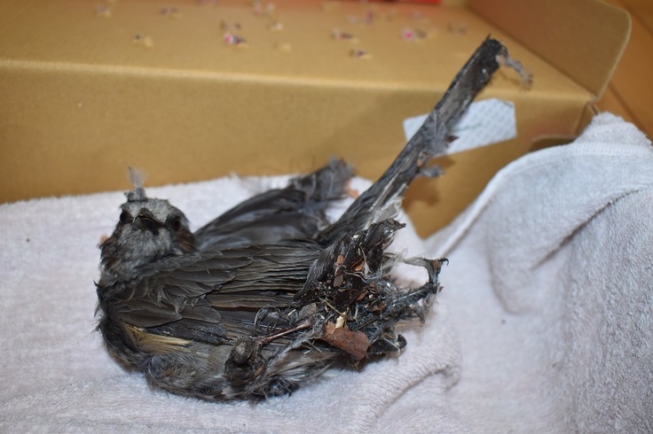 羽に付いた粘着剤をくちばしで器用に取っていくのですが、それをそのまま飲み込んでしまうこともある為、喉や食道にこびり付いて窒息してしまったり消化のできない粘着剤が体内に溜まることで消化不良を起こし、命を落としてしまうのではないかとも考えています。