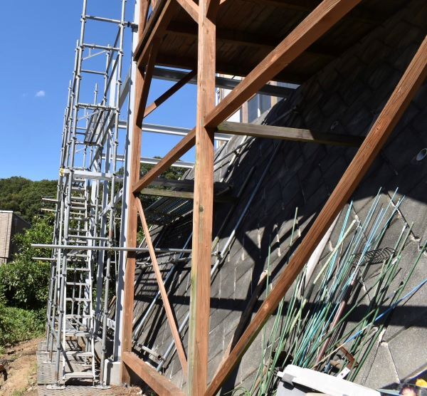 建設場所が斜面になっていることと、地面に太い竹の根が張ってあったことから業者の方もかなり苦戦されていましたが、非常に暑い中、短期間で仕上げてくださいました!