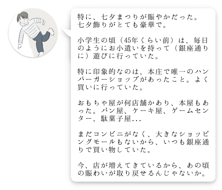 昔の銀座通り商店街について、田島父に聞いてみました。