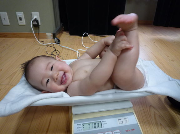 (体重計って安心。ボク大きくなりました。ニコッ!)