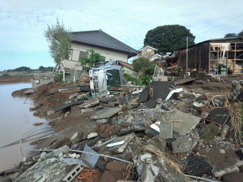 (常総市の被害の写真。アスファルトごと流されてしまっています)