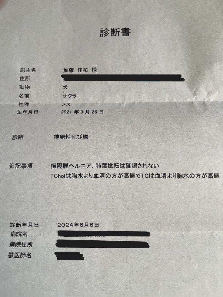 17時前に迎えに行き、その日先生から説明されたのは、【突発性乳び胸】