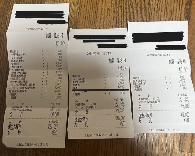 ページ上に掲載している診断書や診療明細書などの資料は全て動物病院から掲載の許諾を得ております。