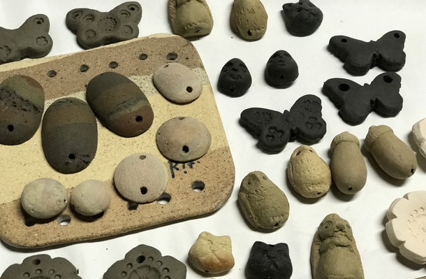 材質:陶器(1,240℃酸化焼成)・水晶・マクラメ蠟引き糸