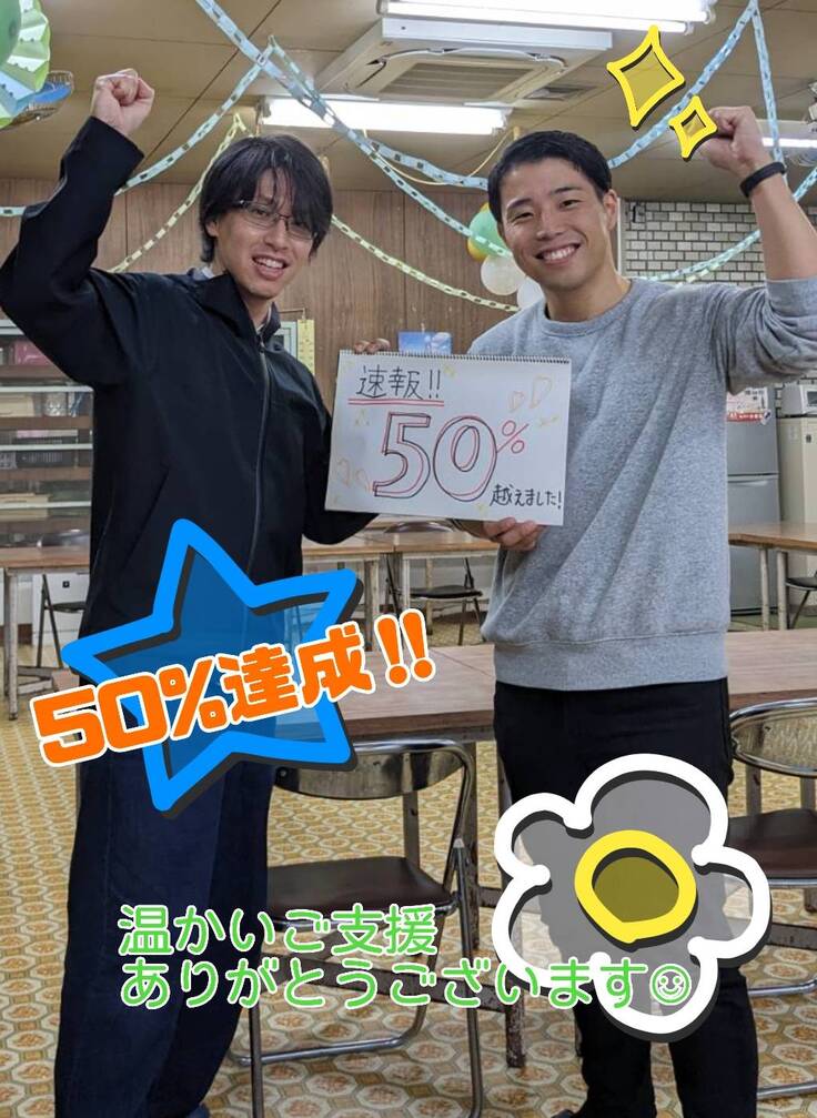 しかし、公開初日から皆様の本当に温かいご支援、それと共に寄せていただく「頑張ってください」の温かいメッセージを頂戴し、目の前にそびえ立っていた「大きな壁」をとうとう50%超えを達成する事が出来ました!
