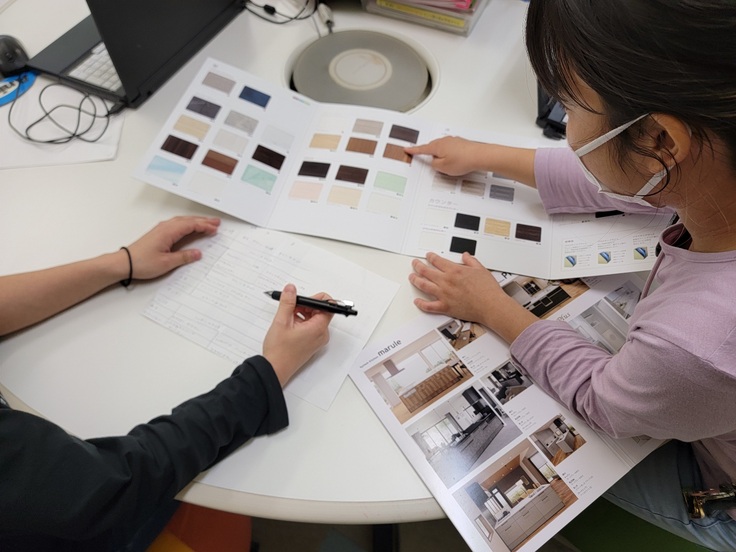 そんな中、内装のキッチンと浴室の色選びが始まりました。