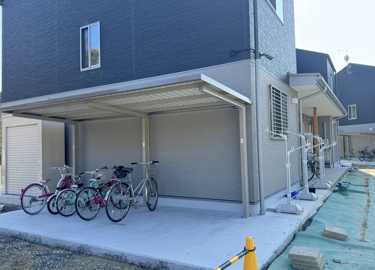 雨ざらしになってしまっていた自転車も、屋根付きの自転車庫の下に置くことができるようになりました!
