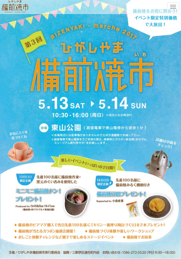 5月13日(土)/14日(日)に開催される【ひがしやま備前焼市】にて、