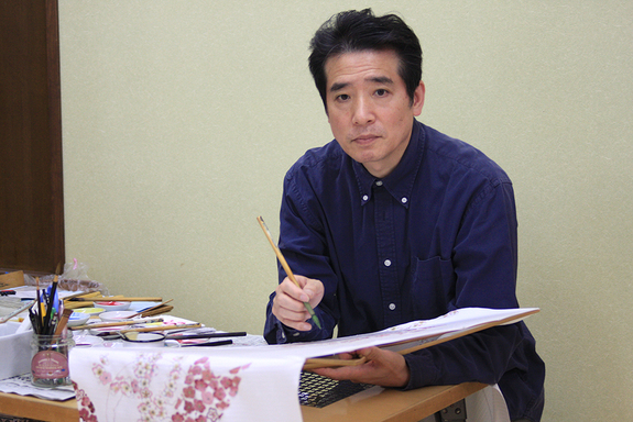 初めまして、「友禅空間工房久恒」代表の久恒俊治です。加賀友禅の模様師として約30年たちます。「日本の伝統技術の加賀友禅をもっと身近に感じていただきたい」という想いのもと、現代生活に調和した工芸品制作に日々奮闘中です。