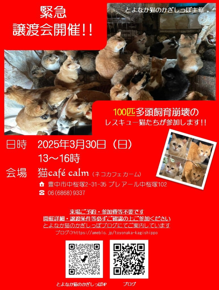 本日は土曜日、保護猫チャリティマルシェがあります。服部緑地公園の近くです、近くに来られる際はぜひお立ち寄りください。