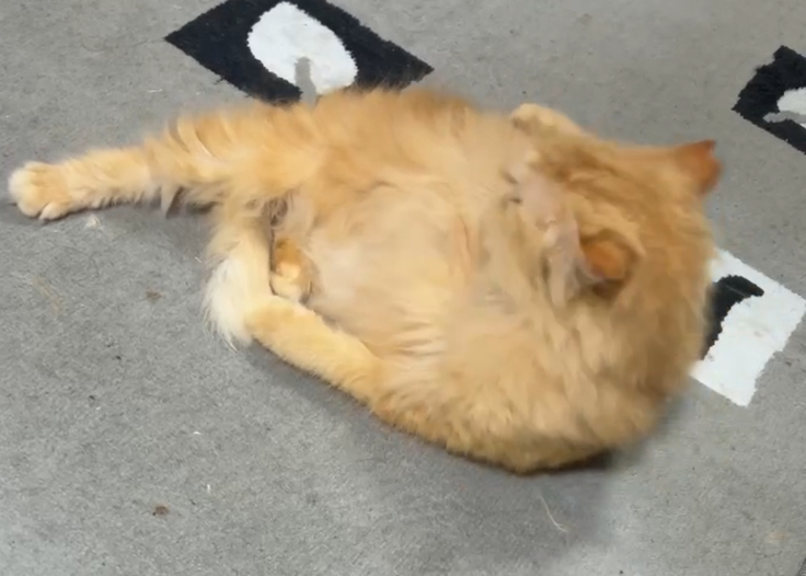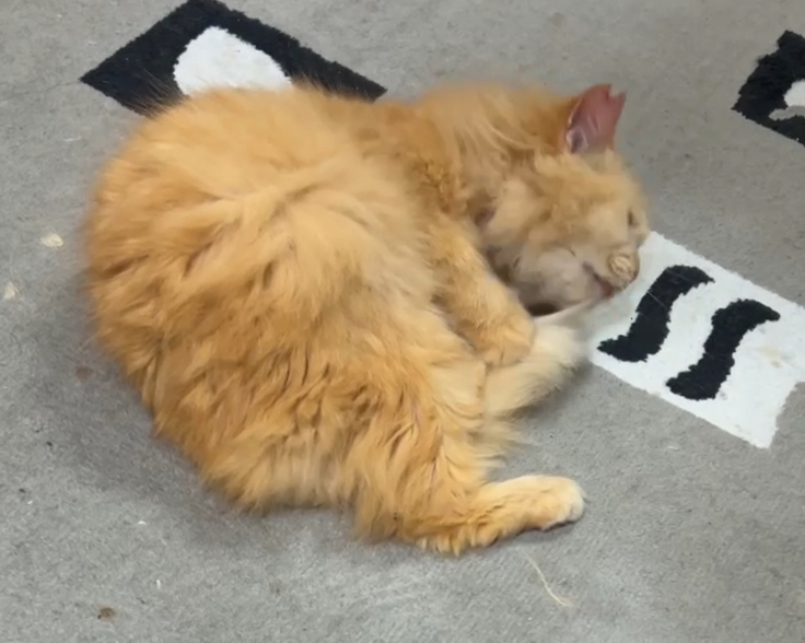 今まで 多頭飼育崩壊宅では 床で寝転がる事が出来なかったせいでか、預かり当初から全く自分の体を舐めない子が多くいました。