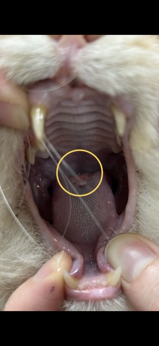預かりメンバー宅に来てから最初に行った病院では舌の奥のど真ん中にあるので、手術は難しいとの診断でした。