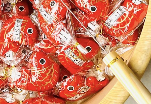 この 張り子の "めで鯛おみくじ" は、例えば初詣前だとたくさん生まれると思うのですが、品薄シーズンもあるだろうから、仕入れられるうちに揃えていただいて安心しました✨