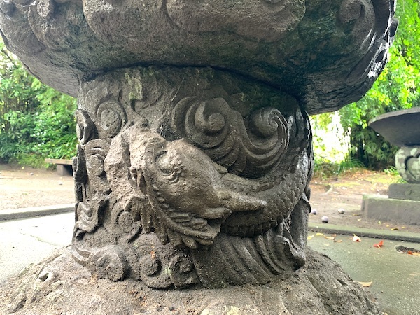 デザインがとにかく可愛らしい縁起物なのですが、この龍を見た時に、私は鹿児島の長田神社様の水盆を思い出したんです。